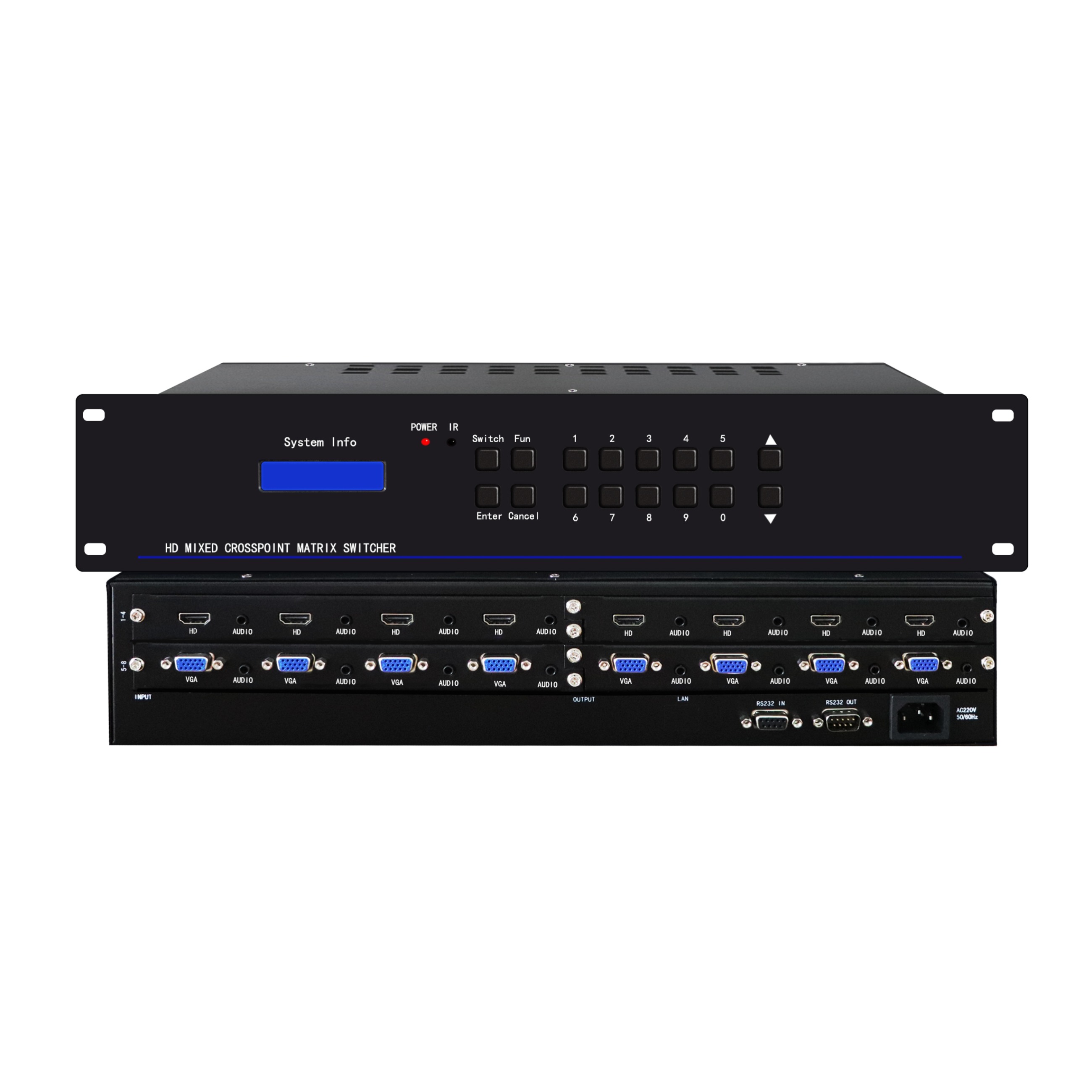 10. 支持RS-232、紅外(選配)、網(wǎng)口(選配)控制信號切換功能;