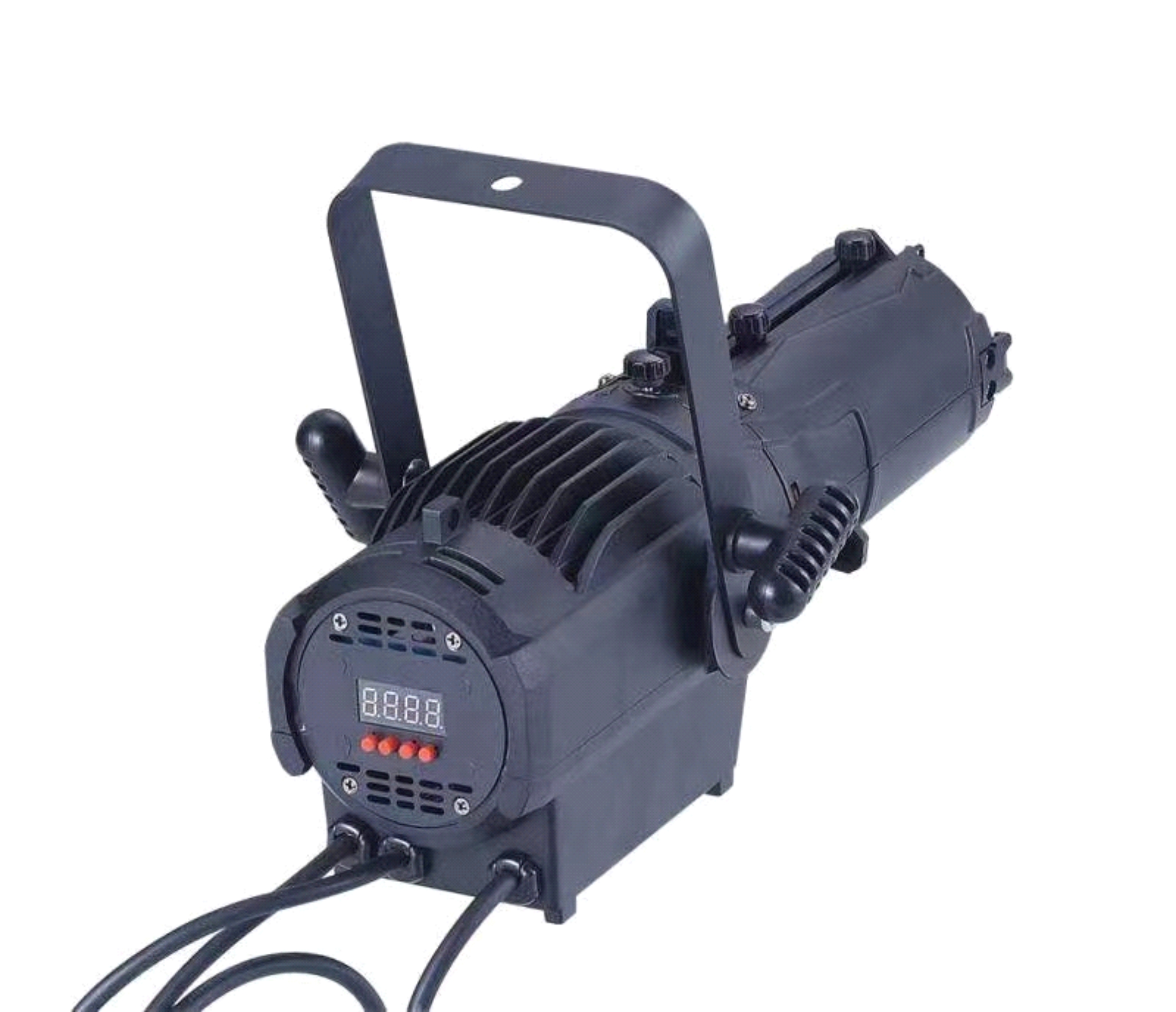 75W變焦迷你成像燈, 獨具匠心的外觀,小巧別致,方便攜帶,安裝過程簡便易行。 采用進口燈珠, 低功率, 高亮度, 高顯指, 色彩還原逼真。 變焦角度從20-35度,手動變焦。 機箱上帶有4個切光片, 可以完美地切出不同形狀的圖形,如半圓形, 正方形,三角形等,而且我們使用了高品質(zhì)光學(xué)元件,自己設(shè)計軟件, 成像清晰, 沒有毛刺, 光斑均勻,可選色溫3200K/5600K。 可調(diào)節(jié)亮度頻閃,頻閃范圍為1-25秒/次。另外, 這款燈可以展示不同的圖案和logo, 客戶可以展示他們自己的logo。 同時機身采用高質(zhì)量壓鑄鋁材質(zhì),穩(wěn)固堅硬,高端, 美觀,機箱顯示板采用數(shù)字碼屏幕,操作簡單易懂。 使用靜音風(fēng)機, 散熱好。