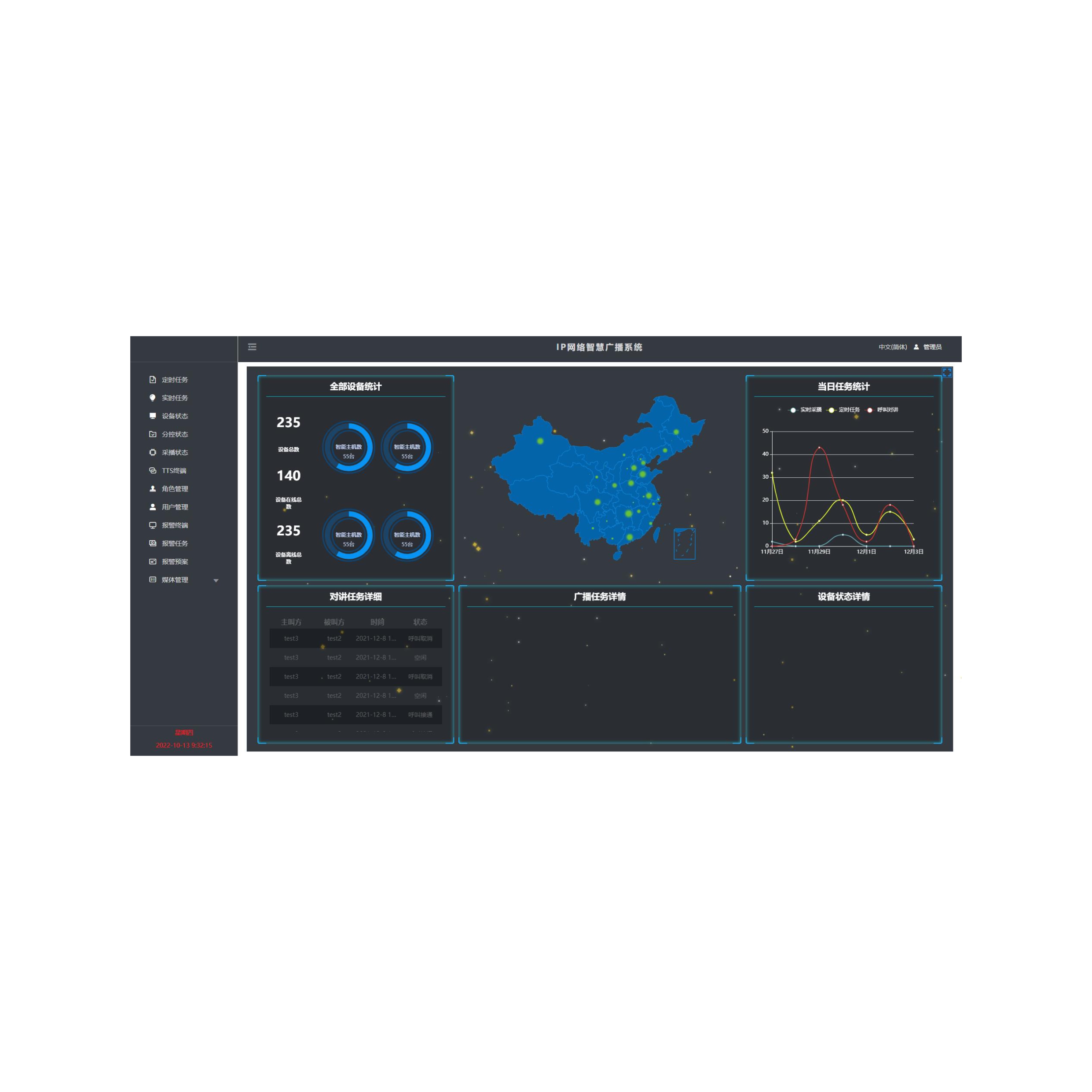 平臺支持全區(qū)、分區(qū)、單點實時廣播音視頻文件和圖文編輯與發(fā)布功能;