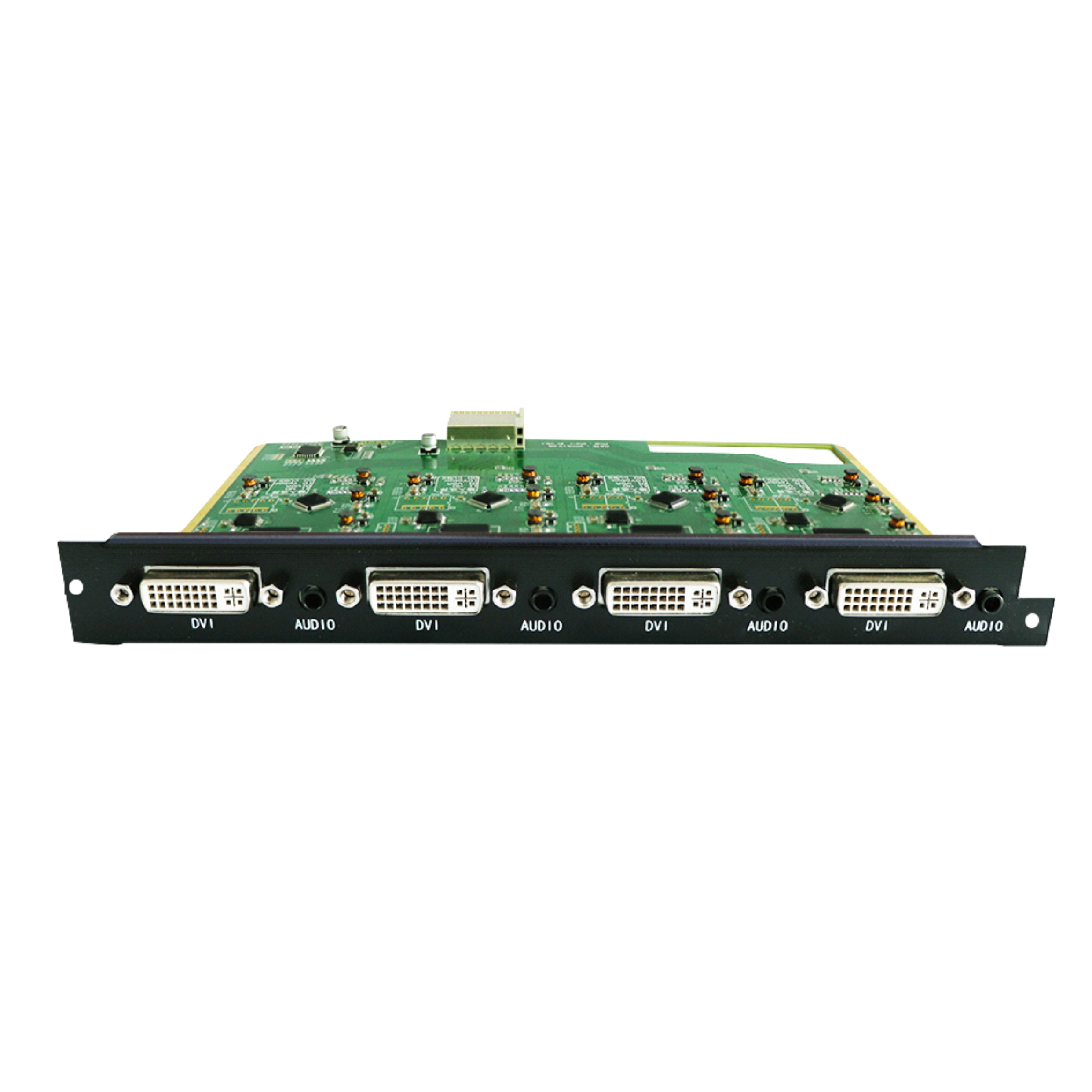 視頻采用DVI-I接口,音頻采用3.5音頻頭,每卡支持4路信號輸入;