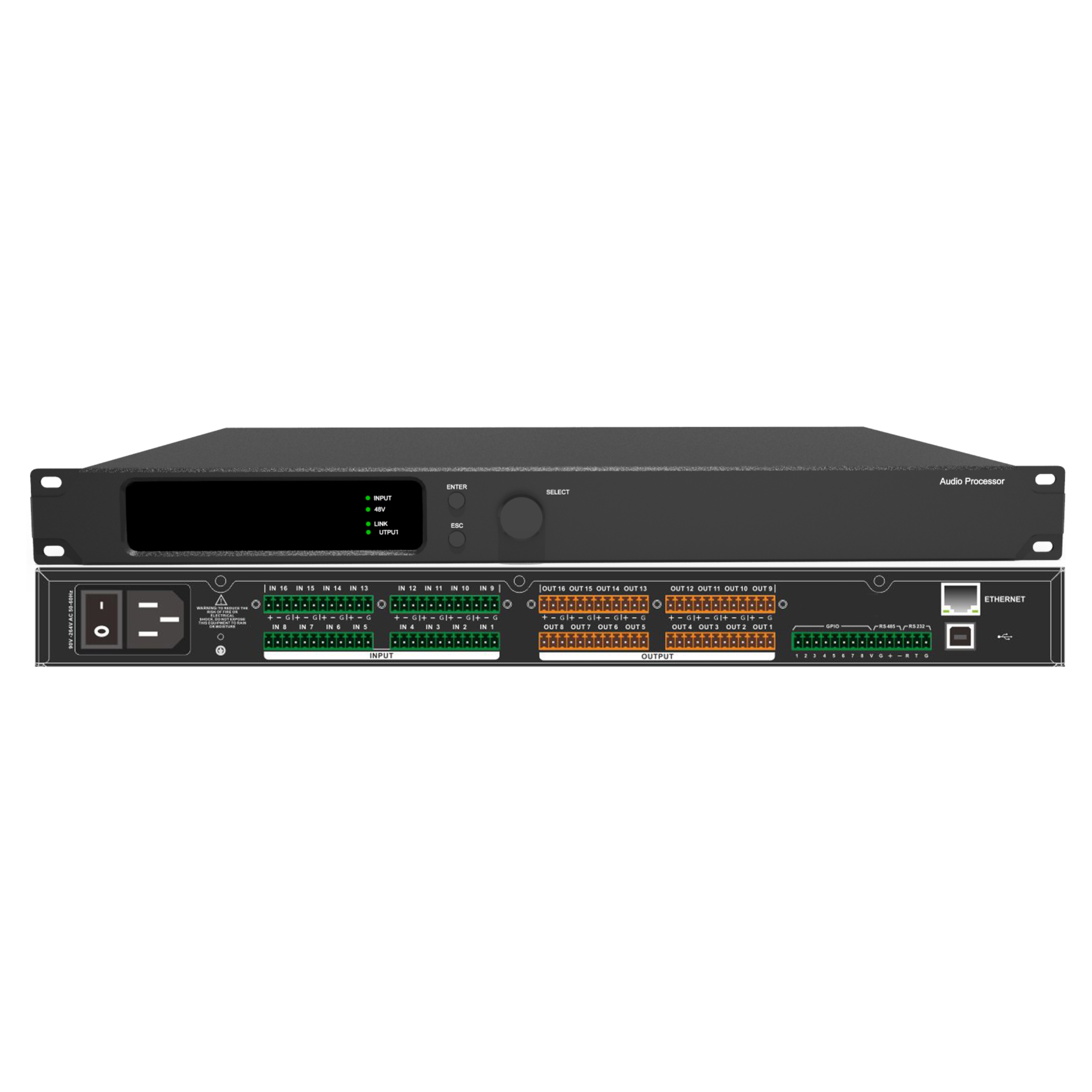 ★16路模擬音頻輸入16路模擬音頻輸出,支持麥克風輸入和線路輸入自由切換