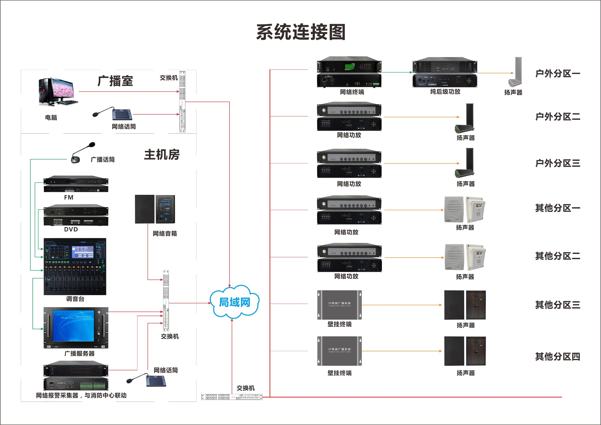 1、整套廣播系統(tǒng)解決了傳統(tǒng)系統(tǒng)問題,滿足于廣場(chǎng)共同區(qū)域的廣播需求。