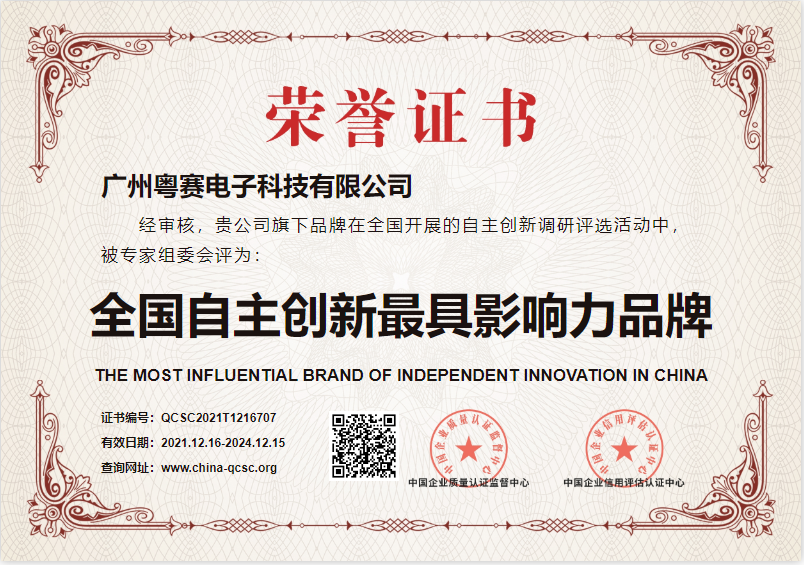 粵賽國際用心十年,先后通過了ISO9001,3C,EC等國內(nèi)外認(rèn)證,從根源上保證產(chǎn)質(zhì)量,讓國內(nèi)外客戶放心!